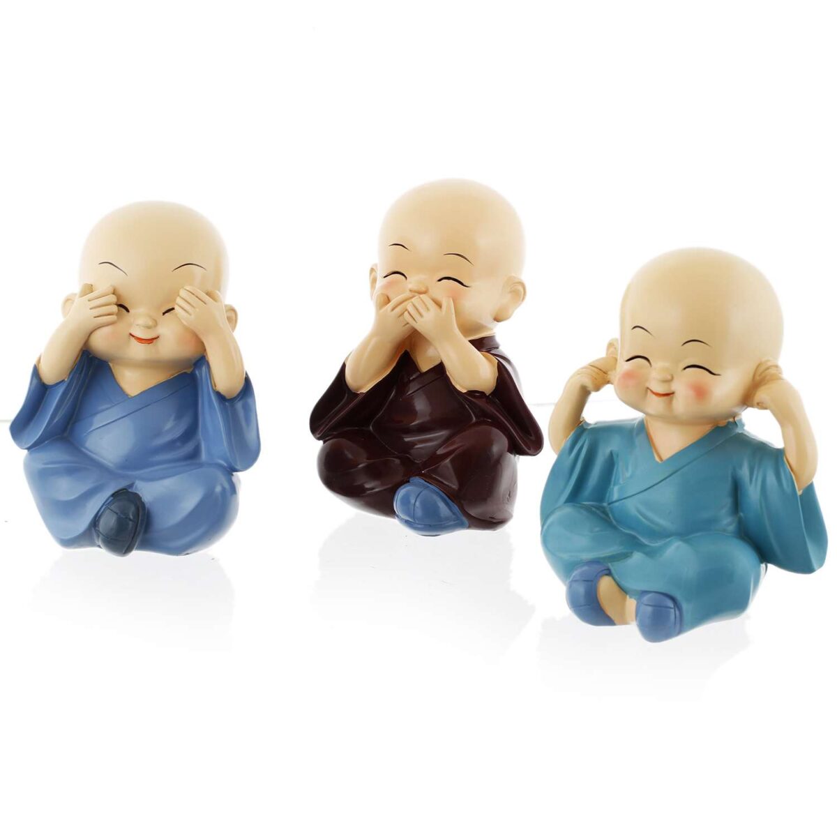 Handcrafted Set of 3 Baby Monk Decorative Showpiece (Polyresin)