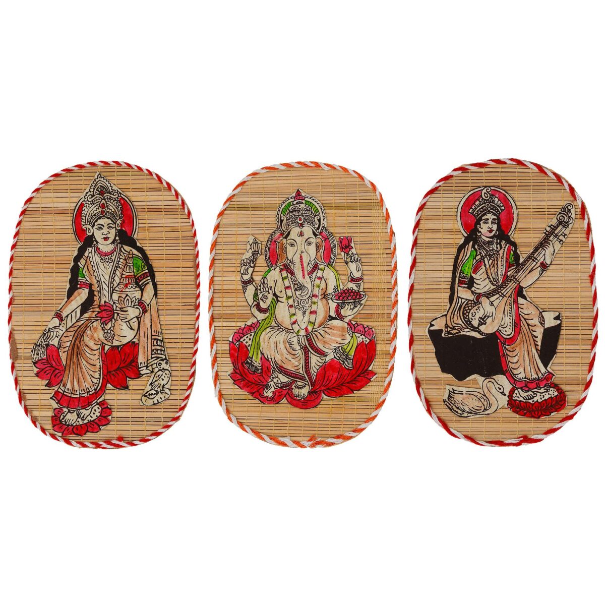 Bamboo Hand Crafted Wall Hangings Of The Trio Of Ganesh Ji, Laxmi Ji And Sarwasti Ji Painting For Home D?cor