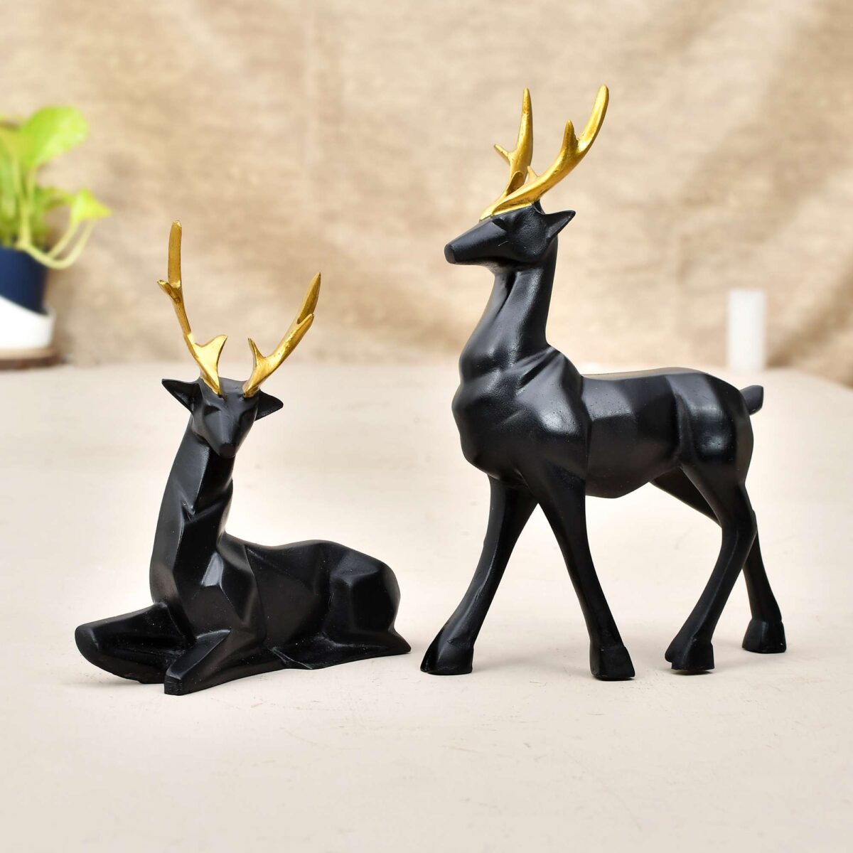 Black Matte Poly Resin ‘Lucky Deer Family’ Showpiece Deer Statue Figurine for Home Decor Living Room Office Home