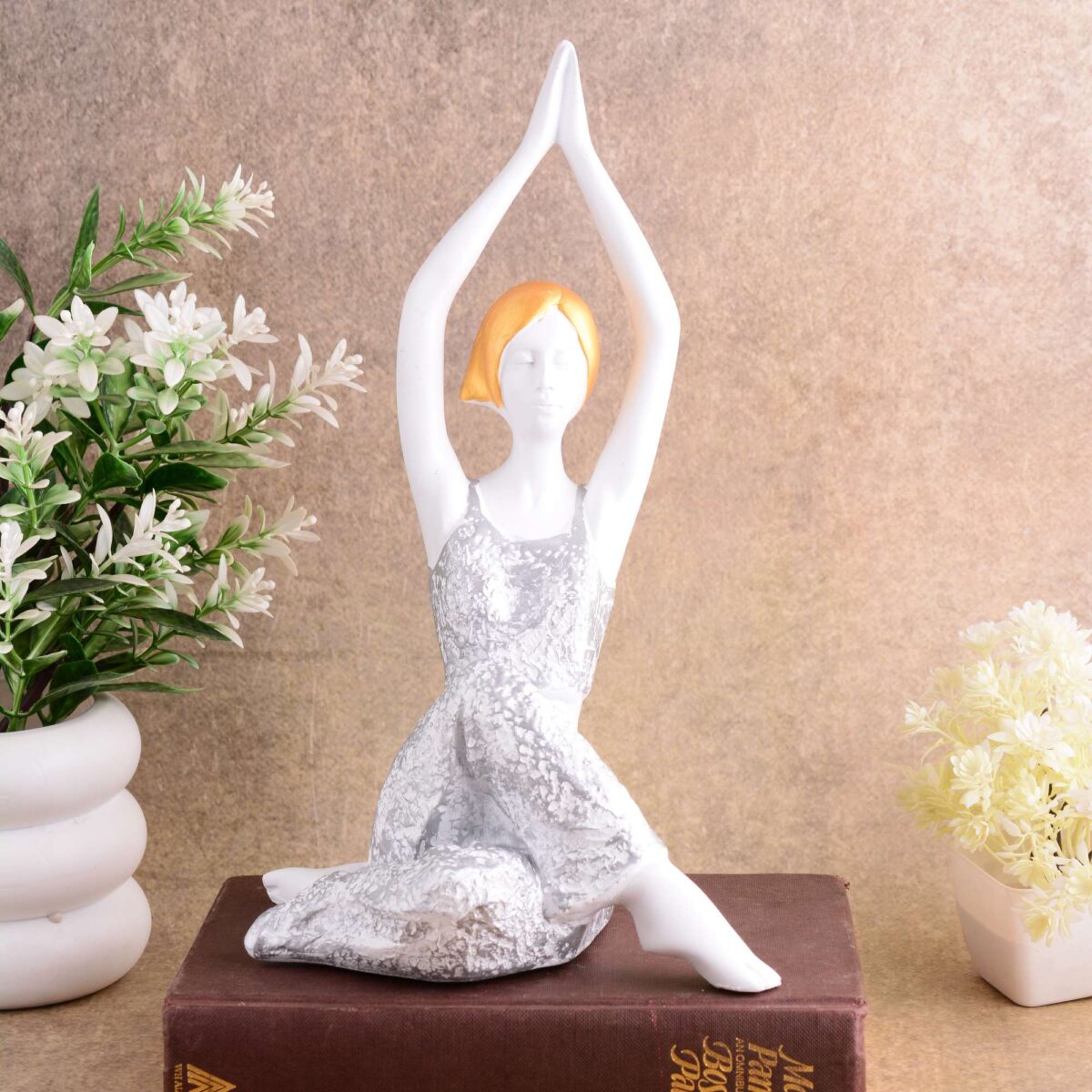Suitable for home decor Yoga Posture Lady Statue Idol for Home Yoga Statue admirable piece of gift (silver)