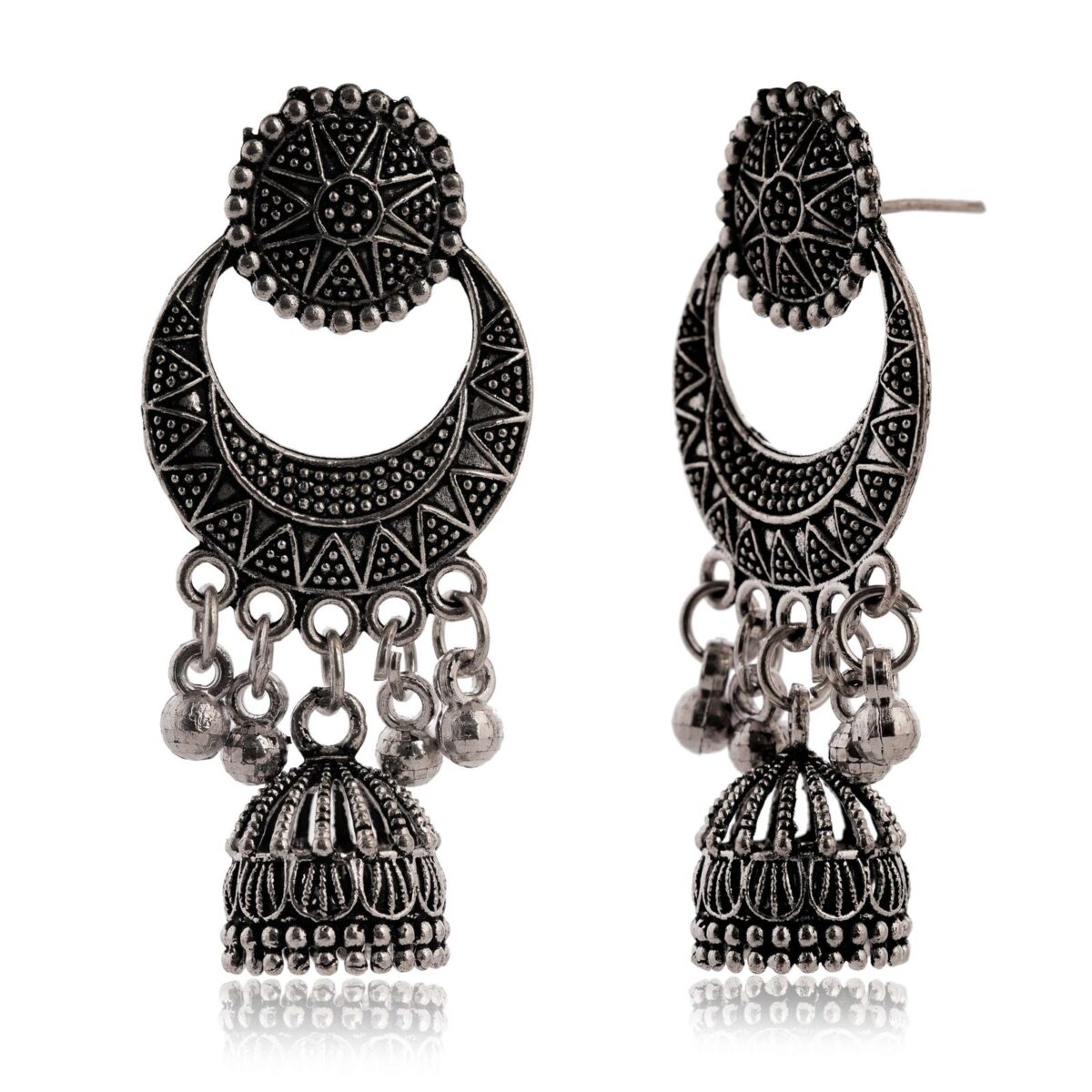 Women’s Traditional Silver AZ838-OXidised Chandbali Ethnic Design Jhumka/Jhumki Earrings for Women