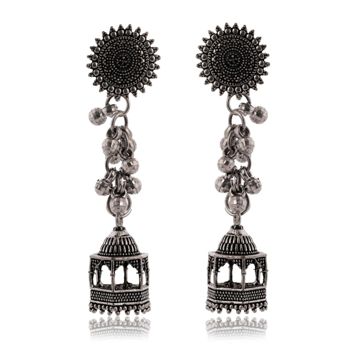 Women’s Indian Traditional AZ838-OXidised Silver Earrings For Women | Elephent Design Jumki Wedding Wear